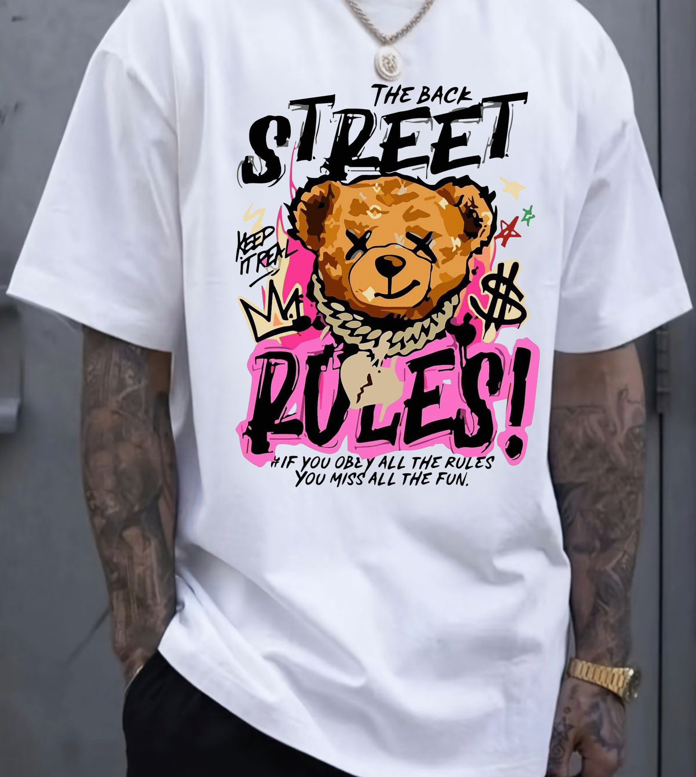 15,34 €This product has multiple variants. The options may be chosen on the product pageМъжка тениска с уникален DTF печат “street rules bear”, съчетаваща сладкия и силен образ на мечето с динамичен и уличен стил. Перфектна за мъже, които обичат да се отличават с креативни и забавни дизайни. Тениската е изработена от качествени материали за комфорт и издръжливост, подходяща за всеки ден или специални моменти.